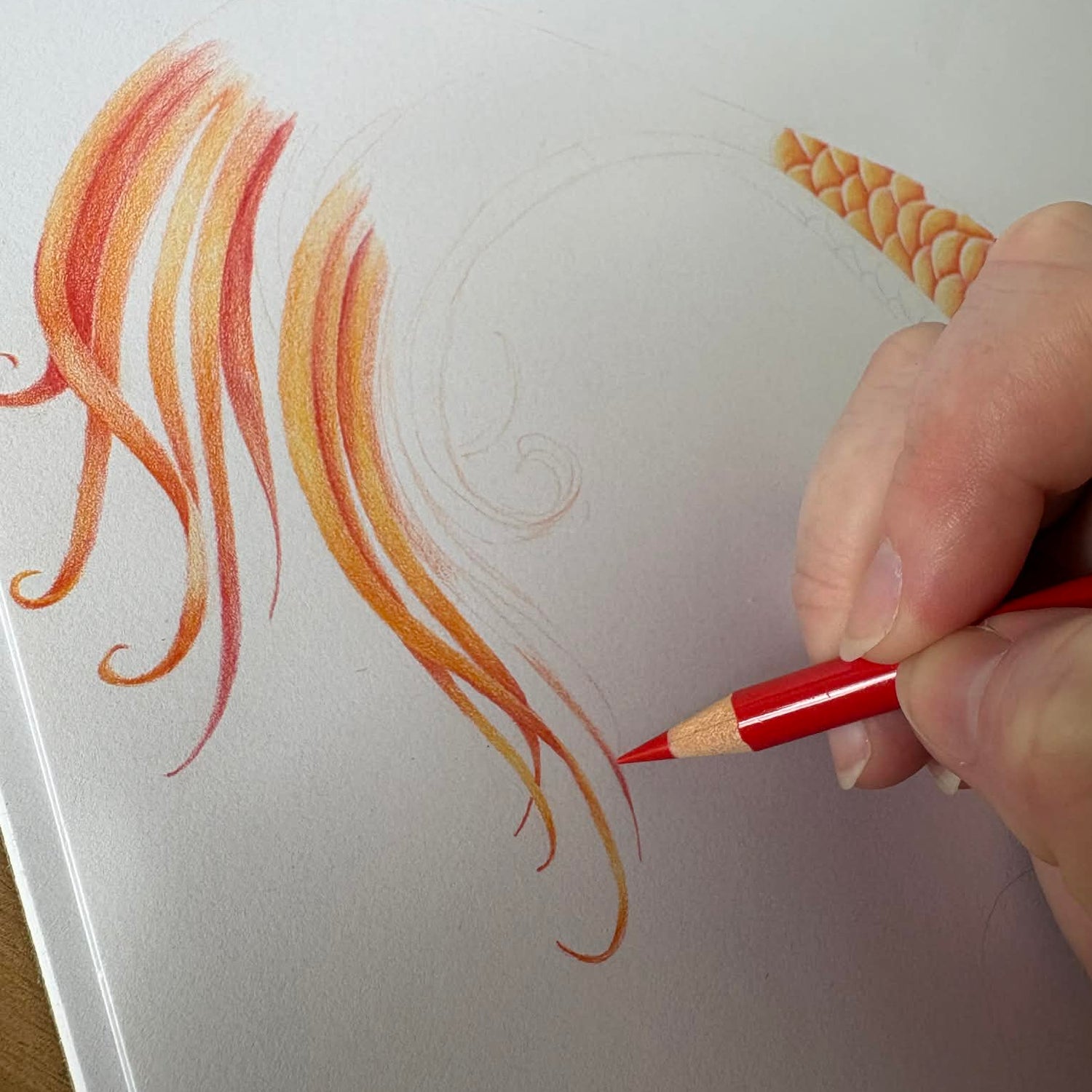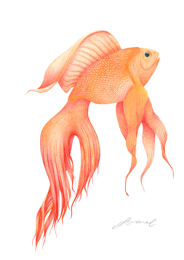 Each print begins as an original piece, hand-drawn in coloured pencil.